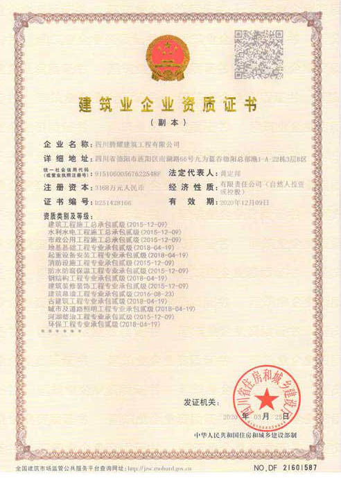 四川騰耀建筑工程有限公司(以下簡稱:四川騰耀)成立于2010年1月,注冊資金1168萬元,員工98人,其中各類注冊工程師62人(次),含高級職稱人員20人中級職稱人員42人,各類評標(biāo)專家15人,既有較強(qiáng)的專業(yè)知識,又有豐富的實(shí)踐經(jīng)驗(yàn);擁有各類設(shè)備200余臺(套)。